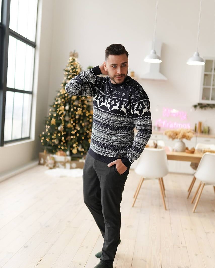Men's Black Christmas Sweater Wrap yourself in festive comfort this holiday season! Our organic cotton Christmas sweater combines soft, luxurious fabric with timeless style. The sleek black design keeps things sophisticated while celebrating the season in true Nordic fashion. Crafted from high-quality organic cotton, it's gentle on your skin and kind to the planet. Whether you're attending holiday gatherings or cozying up at home, this sweater delivers warmth and charm. Makes an exceptional gift for the man who appreciates quality and style. Perfect for creating those cozy Christmas memories!