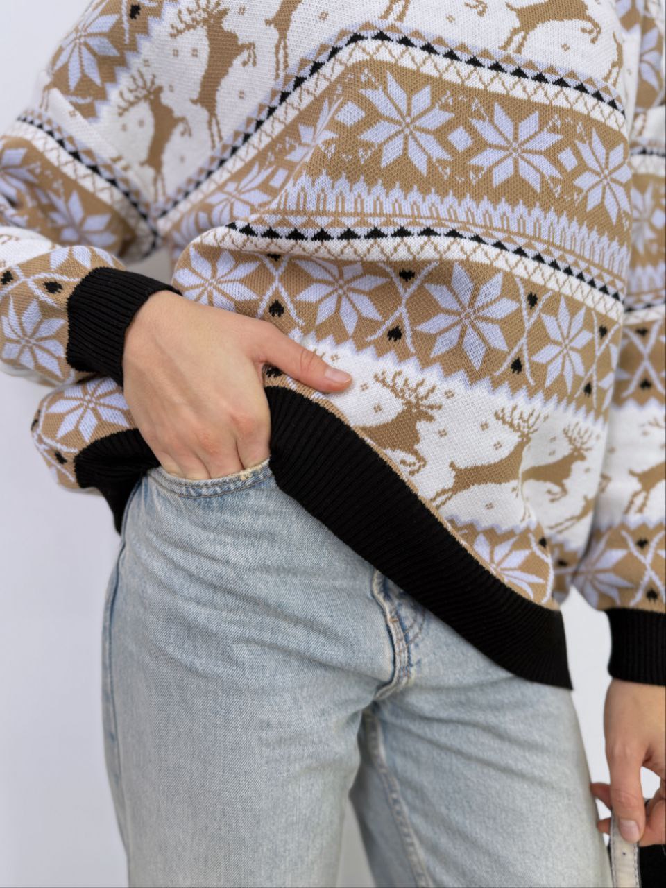 This cozy sweater is crafted for both style and comfort, making it the perfect choice for chilly days and festive gatherings! Featuring a charming Nordic-inspired pattern with reindeer and snowflakes, its soft blend (65% cotton, 35% polyester) feels amazing against your skin and guarantees lasting durability.